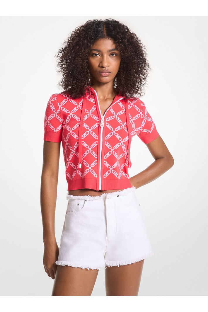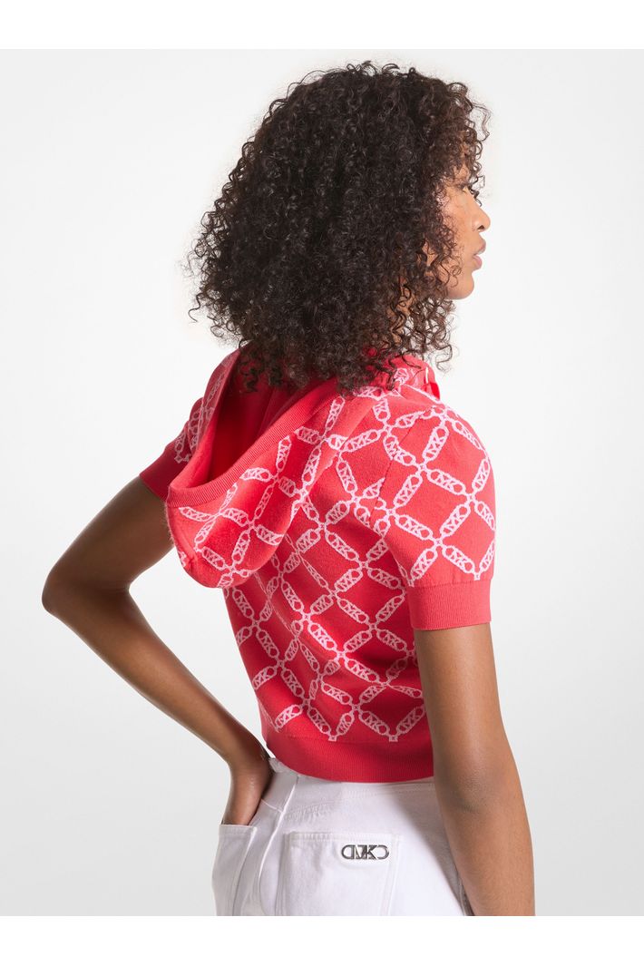 Tecido com nossa estampa Empire Logo, esta blusa de moletom com capuz é uma peça de sobreposição atraente. As mangas curtas e o corte curto são perfeitos para o tempo quente, especialmente quando combinados com o maiô e as sandálias da estação.