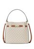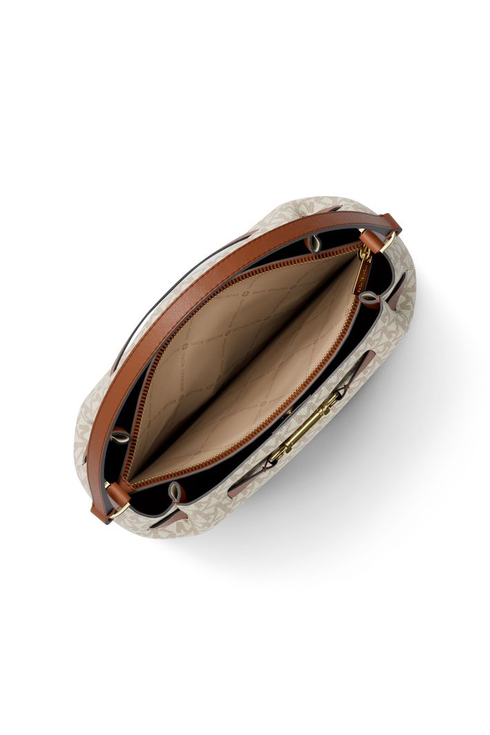 Moderna e versátil, esta bolsa bucket combina o icônico canvas com estampa de logo a um design funcional e elegante. Seu formato estruturado garante espaço interno ideal para os itens essenciais do dia a dia, enquanto as ferragens em tom dourado adicionam um toque sofisticado ao visual. O modelo conta com alça de mão e alça longa ajustável, permitindo diferentes formas de uso no ombro, na transversal ou na mão. Internamente, oferece compartimento central com zíper e bolso adicional para manter tudo organizado com praticidade.