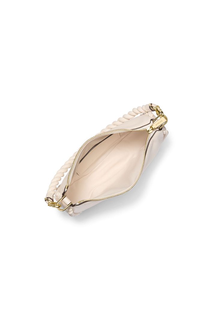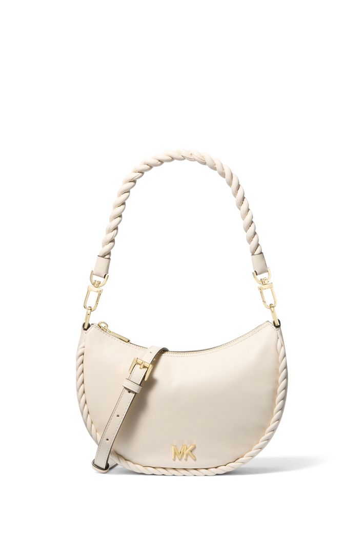 Detalhes trançados conferem à Kyla um charme tátil e uma sofisticação boêmia refinada. Confeccionada em couro rico com contrastes de metais brilhantes, este modelo pode ser usado como bolsa de ombro ou tiracolo.