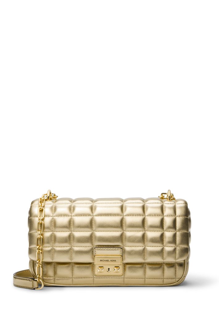 A nossa bolsa Tribeca comprova que estilo e funcionalidade caminham juntos. Com design acolchoado e silhueta elegante, o modelo conta com interior espaçoso, ideal para a rotina. Confeccionada em couro metalizado, possui alça transversal ajustável que permite uso prático, mantendo as mãos livres. Para um visual ainda mais sofisticado, combine com acessórios dourados.