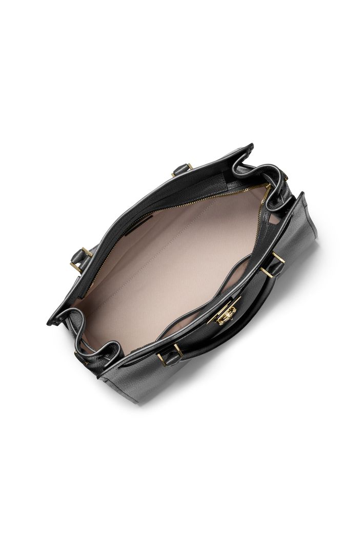 Atualizamos a icônica bolsa Hamilton Moderne com ferragens robustas de inspiração toughluxe e acabamento em couro, criando um visual sofisticado que valoriza qualquer produção. O detalhe de cadeado com tira destaca a silhueta estruturada, enquanto o interior amplo, com bolsos funcionais, mantém seus itens essenciais sempre organizados. Use pelas alças de mão ou pela alça transversal ajustável para maior versatilidade no dia a dia.