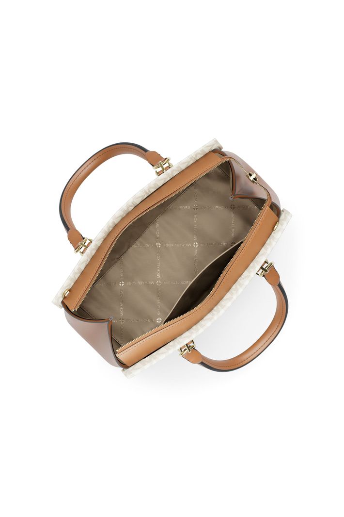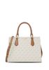 • Com design estruturado e elegância atemporal, esta satchel une sofisticação e funcionalidade para o dia a dia. Confeccionada em canvas com estampa de logo, o modelo conta com acabamento refinado, ferragens metálicas e interior bem organizado, ideal para acompanhar produções do trabalho aos compromissos urbanos. Pode ser usada pelas alças de mão ou com a alça longa ajustável e removível, oferecendo versatilidade no uso.