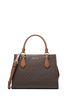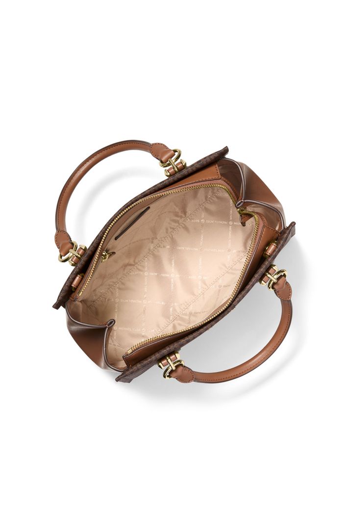 Com design estruturado e elegância atemporal, esta satchel une sofisticação e funcionalidade para o dia a dia. Confeccionada em canvas com estampa de logo, o modelo conta com acabamento refinado, ferragens metálicas e interior bem organizado, ideal para acompanhar produções do trabalho aos compromissos urbanos. Pode ser usada pelas alças de mão ou com a alça longa ajustável e removível, oferecendo versatilidade no uso.