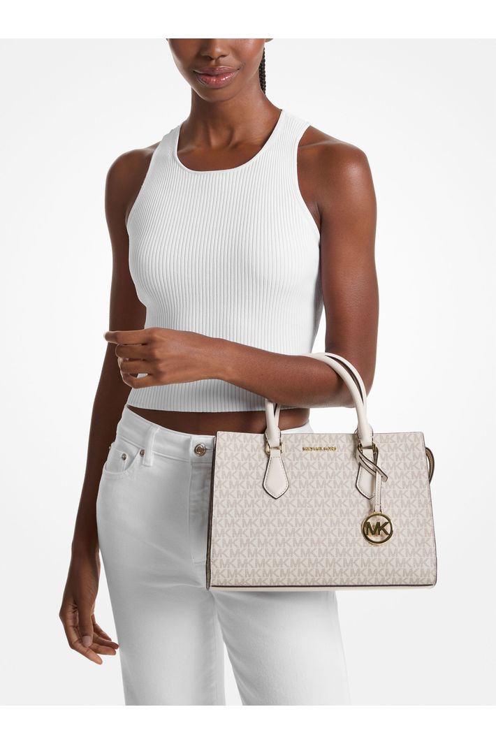 Elegante e sofisticada, a bolsa Sheila é um estilo clássico que você pode usar o dia todo e durante a noite. Coberta com nosso icônico padrão Signature e finalizada com ferragens minimalista, ela possui bolsos internos para organizar seus pertences. Carregue pela alça superior elegante ou prenda a alça de ombro inclusa para usá-la atravessada.