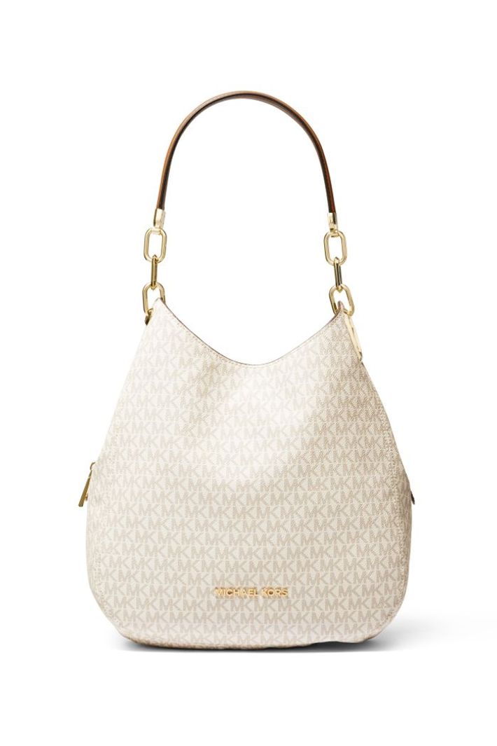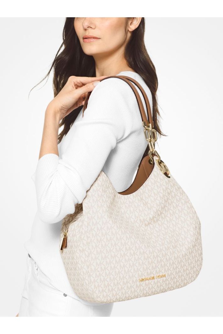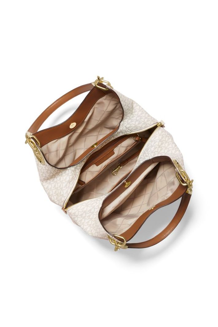 Nossa bolsa tote Lillie combina o glamour atemporal e a funcionalidade do dia a dia. Esta bolsa possui nossa impressão do logotipo Signature e se abre para revelar dois compartimentos de pressão e um bolso com zíper central. Conte com ele para transportar seus itens essenciais com facilidade e estilo.