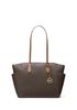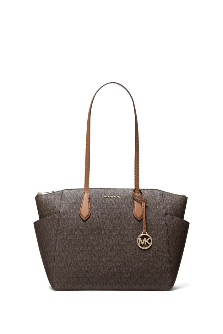 Sofisticação e funcionalidade definem a nova Tote Marilyn. Confeccionada em canvas com estampa icônica do monograma MK, o modelo traz acabamento em couro contrastante que adiciona um toque refinado ao design atemporal. O formato estruturado oferece amplo espaço interno para organizar seus itens essenciais, enquanto as alças longas garantem conforto ao usar no ombro. O charme fica por conta do pingente metálico com logo MK, que reforça a identidade da marca e o visual sofisticado da peça.