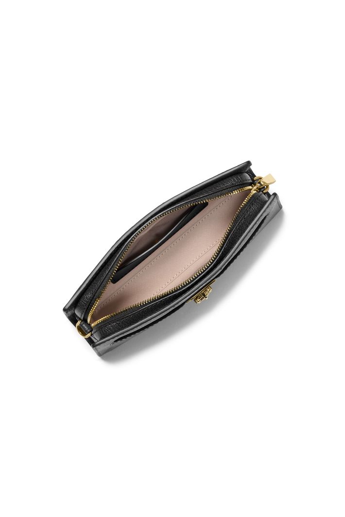 O modelo reinventa os clássicos walletonchain com acabamento em couro, detalhe de cadeado com tira e corrente metálica, que adicionam um toque moderno e elegante.Use com a alça transversal removível para um visual prático no dia a dia ou acomode dentro da tote coordenada como item essencial para todas as ocasiões.