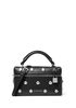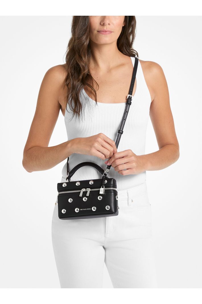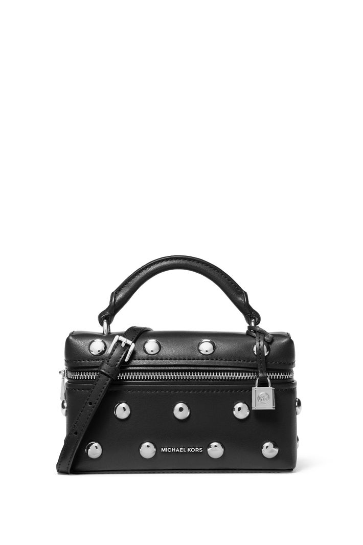 Confeccionada em couro com aplicação de studs, a Jana adiciona um toque de glamour à rotina. Compacta e funcional, possui interior no tamanho ideal para acomodar seus essenciais do dia a dia com praticidade. Pode ser usada pela alça de mão para um visual mais elegante ou com a alça transversal removível para maior liberdade de movimento. Para mantêla em destaque, aposte em produções em tons coordenados.