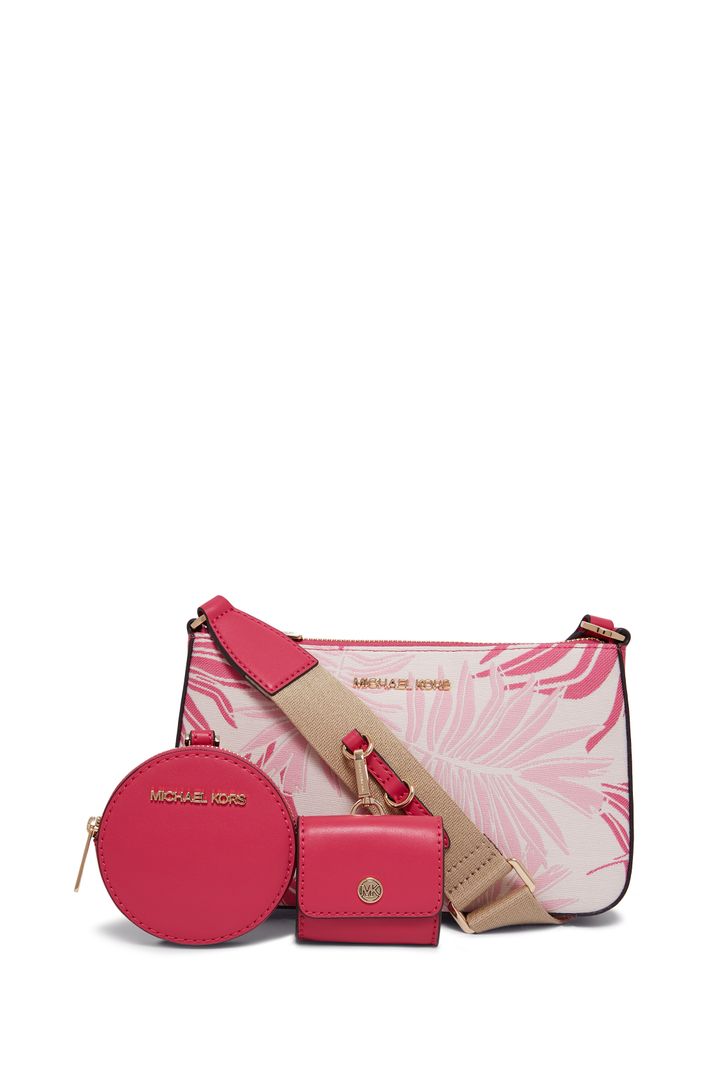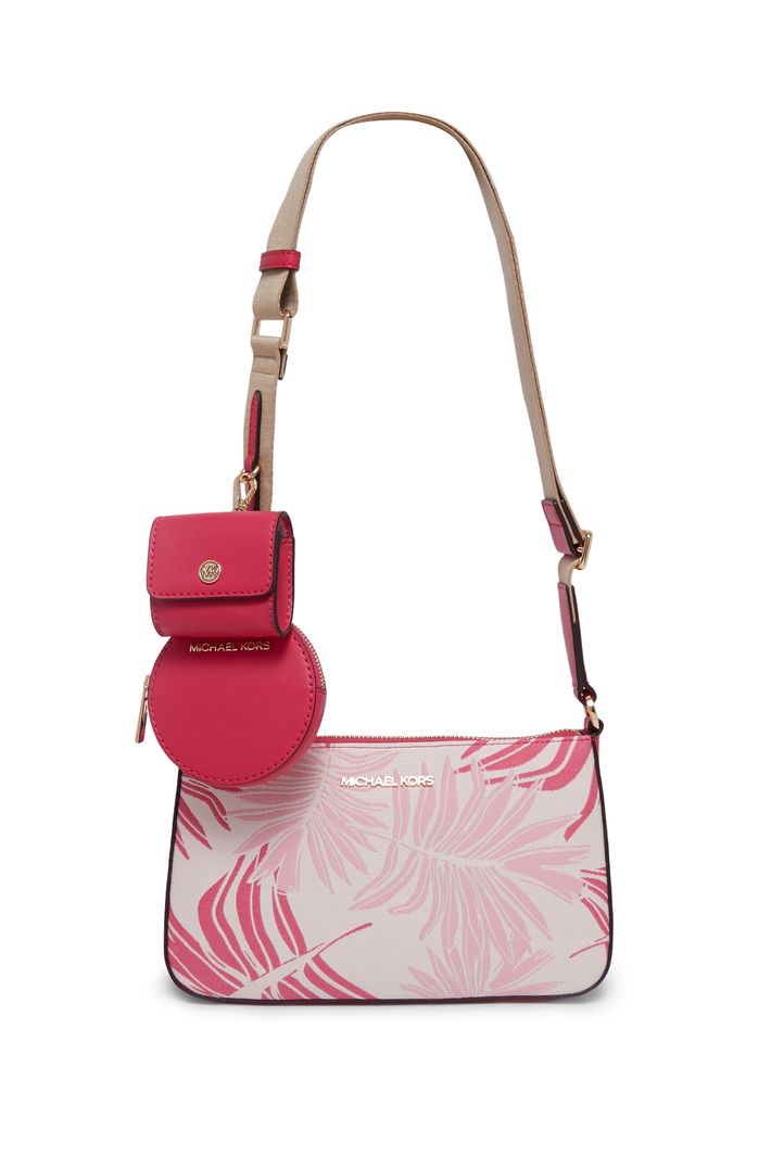 Mantenha seus AirPods Pro® por perto com nossa bolsa transversal Jet Set. Tecido com folhas de palmeira coloridas para um toque tropical e de clima quente, esta bolsa foi cuidadosamente equipada com suportes compatíveis com tecnologia para armazenar Airpods® Pro, fones de ouvido com fio e até moedas. A alça inspirada em viagens pode ser ajustada em comprimento para ser usada por cima do ombro ou transversalmente ao corpo, dependendo do que o seu dia exigir.