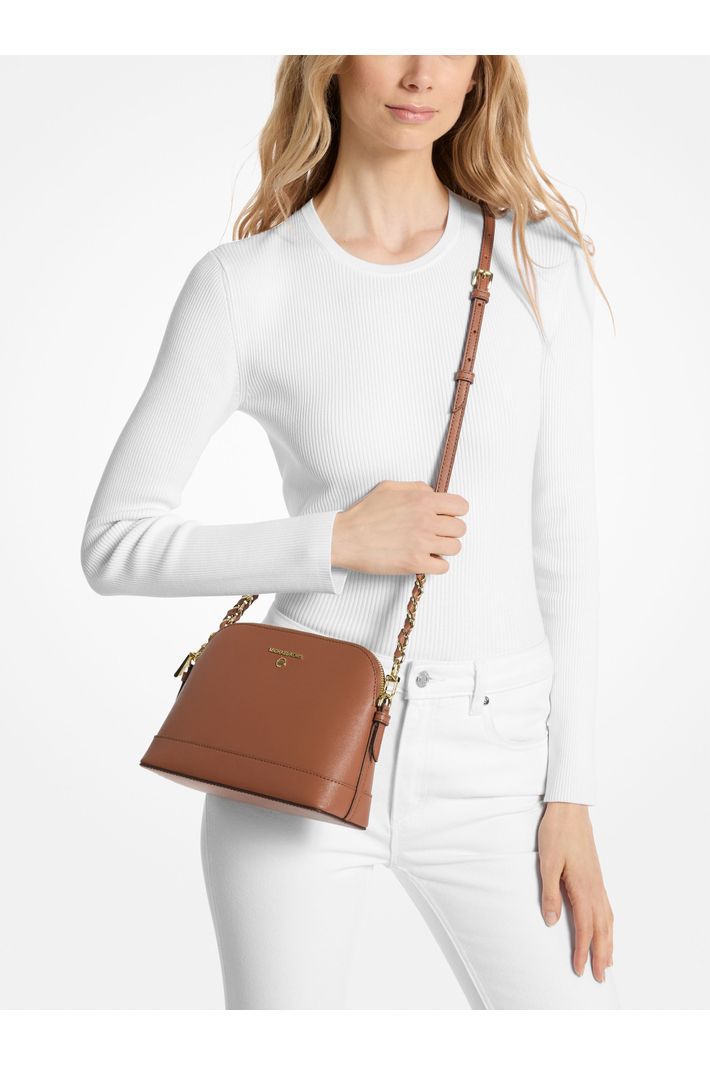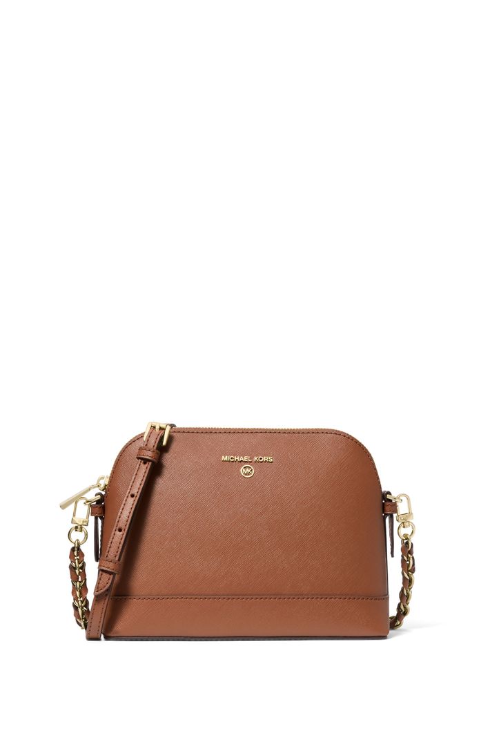 • Nossa bolsa transversal de couro foi projetada para levá-la do amanhecer ao anoitecer com facilidade. Moldada em uma silhueta em forma de cúpula com ferragens douradas, ela se abre para um interior com bolsos para armazenar seus itens essenciais do dia-a-dia. Ajuste a alça de ombro de elo da corrente para o encaixe perfeito.