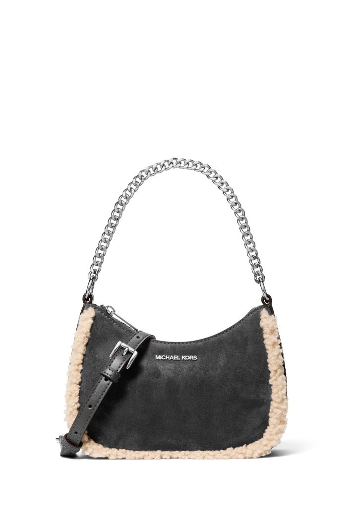 Com design sofisticado e toque aconchegante, esta Jet Set combina elegância e conforto em uma silhueta compacta e moderna. Confeccionada em camurça com acabamento em faux shearling nas laterais e base, o modelo traz textura e charme ao visual. A alça de corrente metálica adiciona um toque refinado, enquanto a alça transversal ajustável e removível permite diferentes formas de uso. Ideal para elevar produções do dia a dia com estilo, especialmente em looks de inverno.