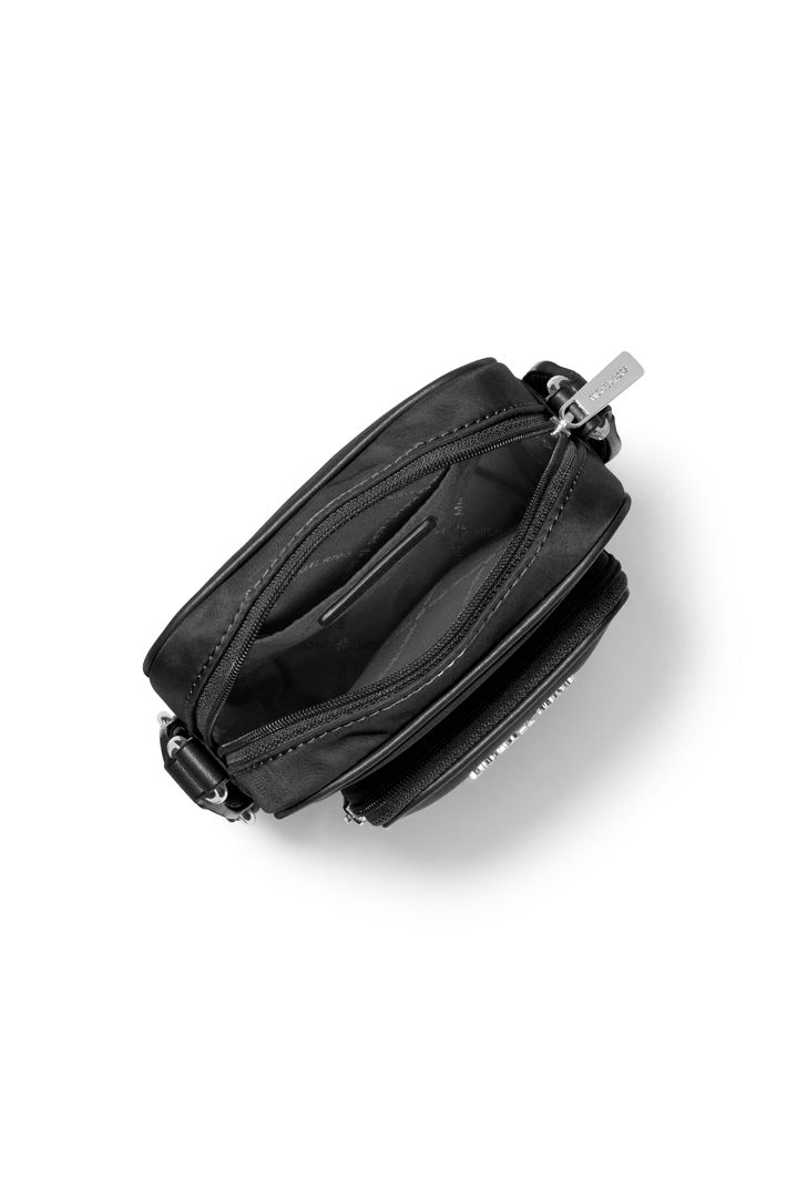 A bolsa transversal Khai é a combinação perfeita de estilo urbano e praticidade. Confeccionada em náilon resistente com detalhes em poliuretano, esta bolsa apresenta ferragens prateadas e um design moderno que a torna ideal para o dia a dia, viagens ou compromissos casuais. Com um compartimento principal espaçoso, um bolso frontal com zíper e um bolso interno deslizante, oferece organização e fácil acesso aos seus itens essenciais. A alça ajustável permite usá-la de forma confortável no ombro ou como transversal, adaptando-se ao seu estilo e necessidade.