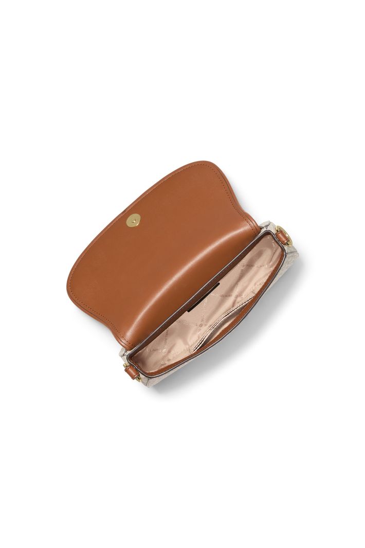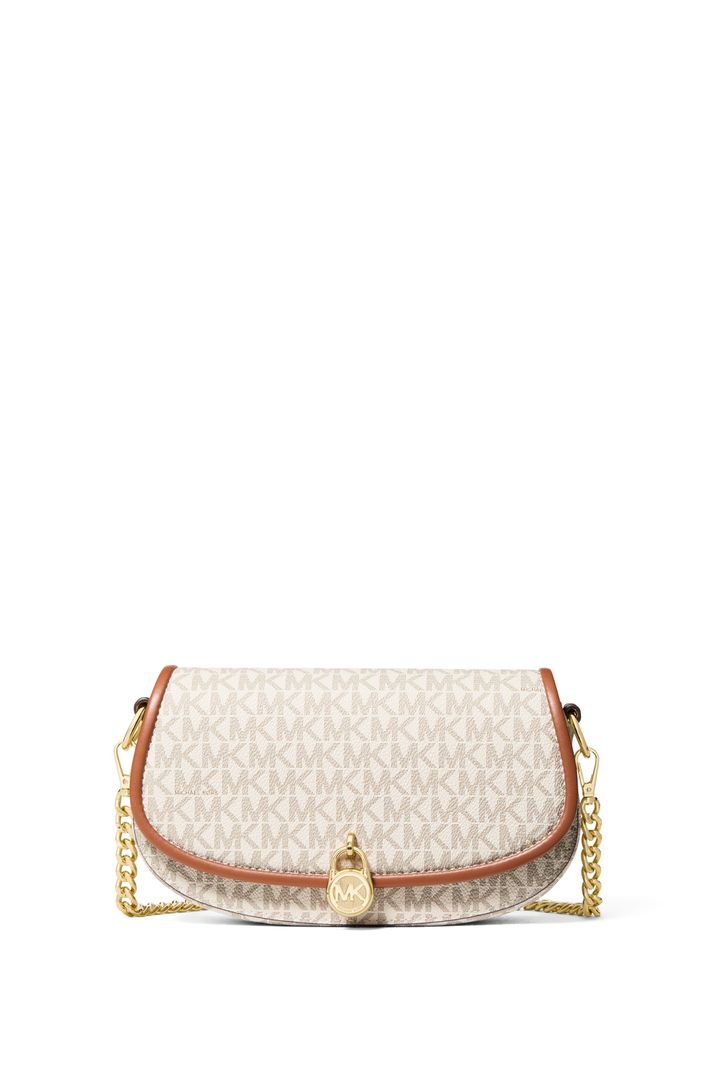 Nossa bolsa Mila traduz o equilíbrio perfeito entre sofisticação e praticidade. Confeccionada em material com a icônica estampa de logo em marrom escuro, o modelo se destaca pelo fecho em cadeado dourado, que adiciona um toque de elegância clássica.Com aba de formato oval e design minimalista, a peça traz um visual moderno sem abrir mão do DNA da marca.