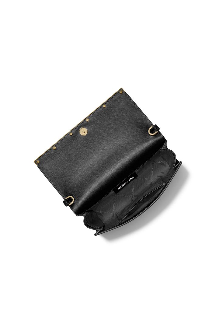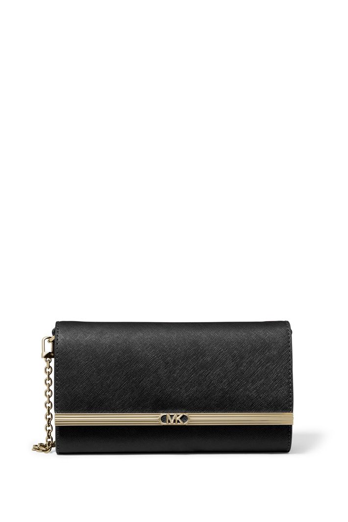 A silhueta elegante da nossa clutch Mona torna-a um investimento valioso. Fabricada em couro Saffiano, é acentuado com nossa placa com o logotipo Empire e uma alça de corrente removível para uso com as mãos livres. No interior, há espaço suficiente apenas para as chaves, a carteira e o telefone. Leve-a na mão ou coloque-a em uma bolsa maior para uma noite na inauguração de uma galeria ou em um bar na cobertura.