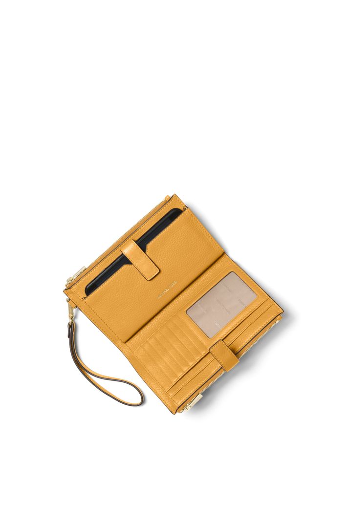 Confeccionada em couro pebble de alta qualidade para um estilo atemporal, esta carteira elegante possui dois lados com zíper que se abrem revelando compartimentos centrais para todos os itens essenciais, desde cartões de crédito até seu smartphone. A alça de pulso aumenta sua versatilidade, permitindo que seja carregada sozinha ou dentro de uma bolsa maior.