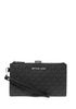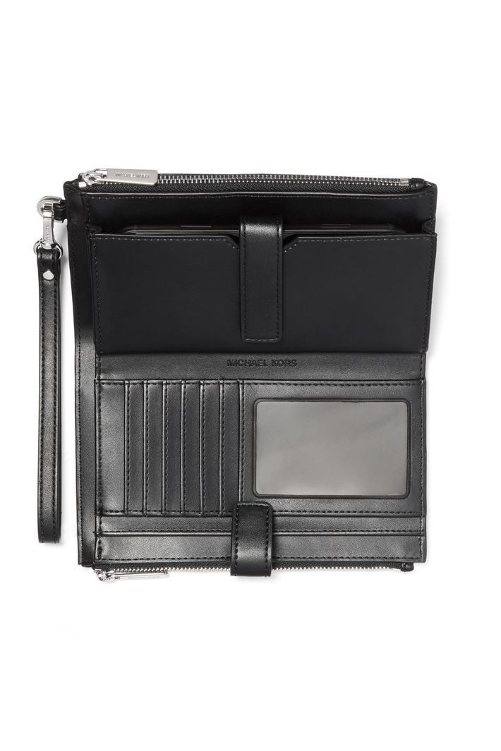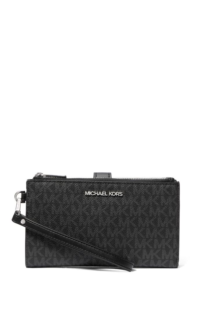 Carteira Michael Kors revestida em Canvas. Possui placa com o logo da marca, ferragens douradas, compartimentos interno e fechamento por botão de pressão.