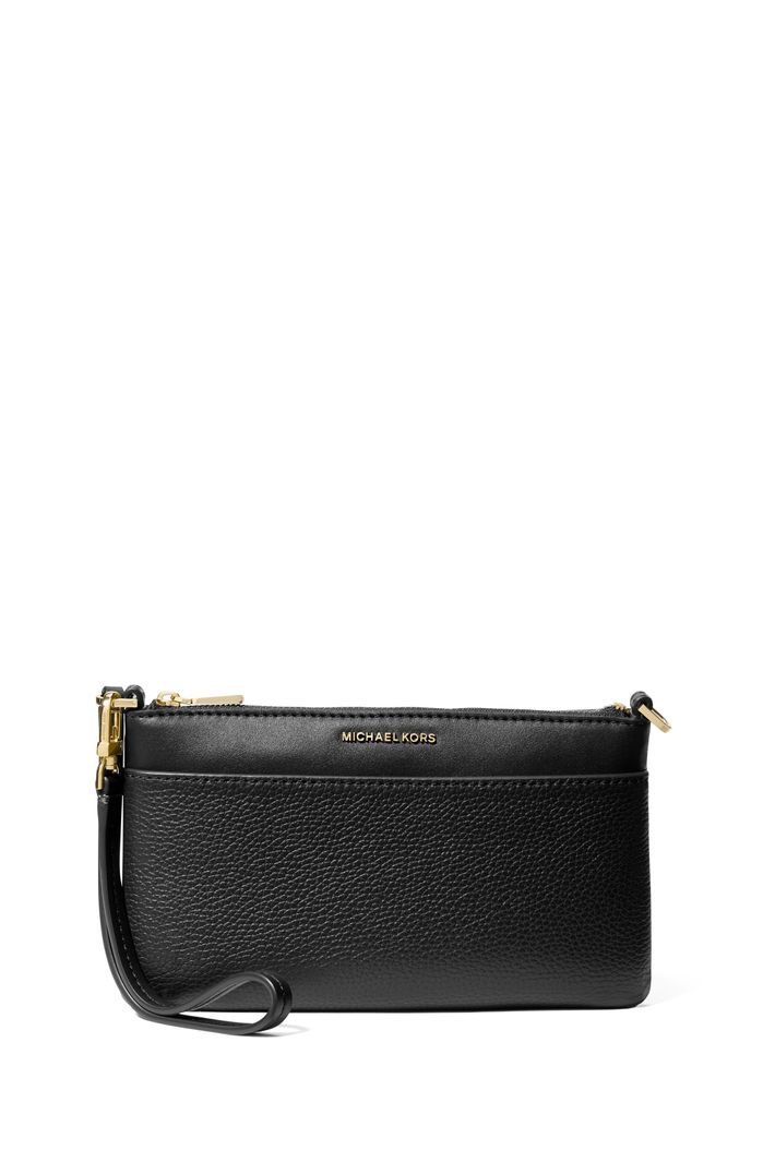 Elegante sem esforço, nossa Jet Set é confeccionada em couro granulado com acabamento em couro liso e ferragens douradas, conferindo um estilo sofisticado. Este modelo médio possui fechamento superior em zíper para manter seus itens essenciais organizados e alça de pulso removível, oferecendo opções versáteis de uso. Perfeita para transições do dia para a noite com facilidade e elegância.