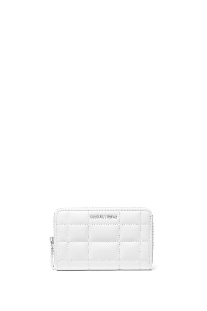 Uma silhueta compacta com zíper, esta carteira de couro acolchoada é finalizada com detalhes dourados brilhantes. Coloque-o na sua bolsa favorita como um acessório chique e sem esforço.