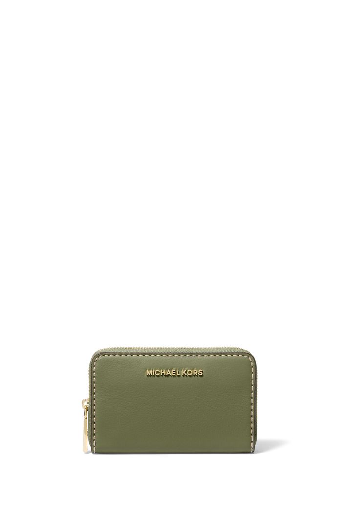 Projetada em um formato compacto com zíper e em detalhes de costura contrastante, esta carteira de couro liso se abre para revelar vários compartimentos para cartões e espaço para seu dinheiro. Adoramos como um bolso externo permite acesso rápido à sua identidade. Use com a bolsa tote combinando ou com uma clutch à noite.