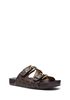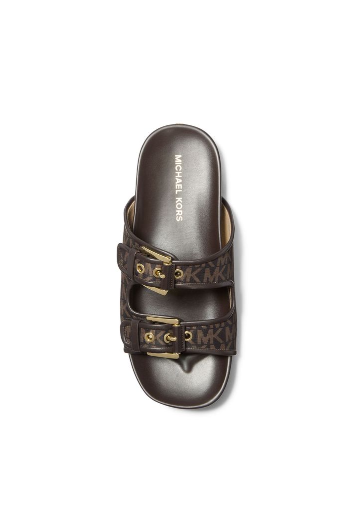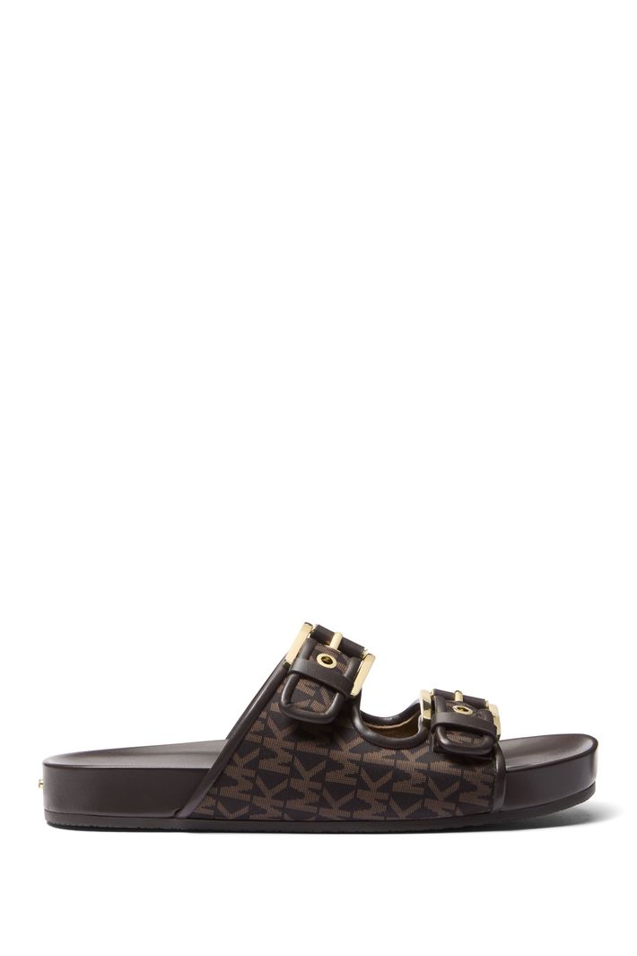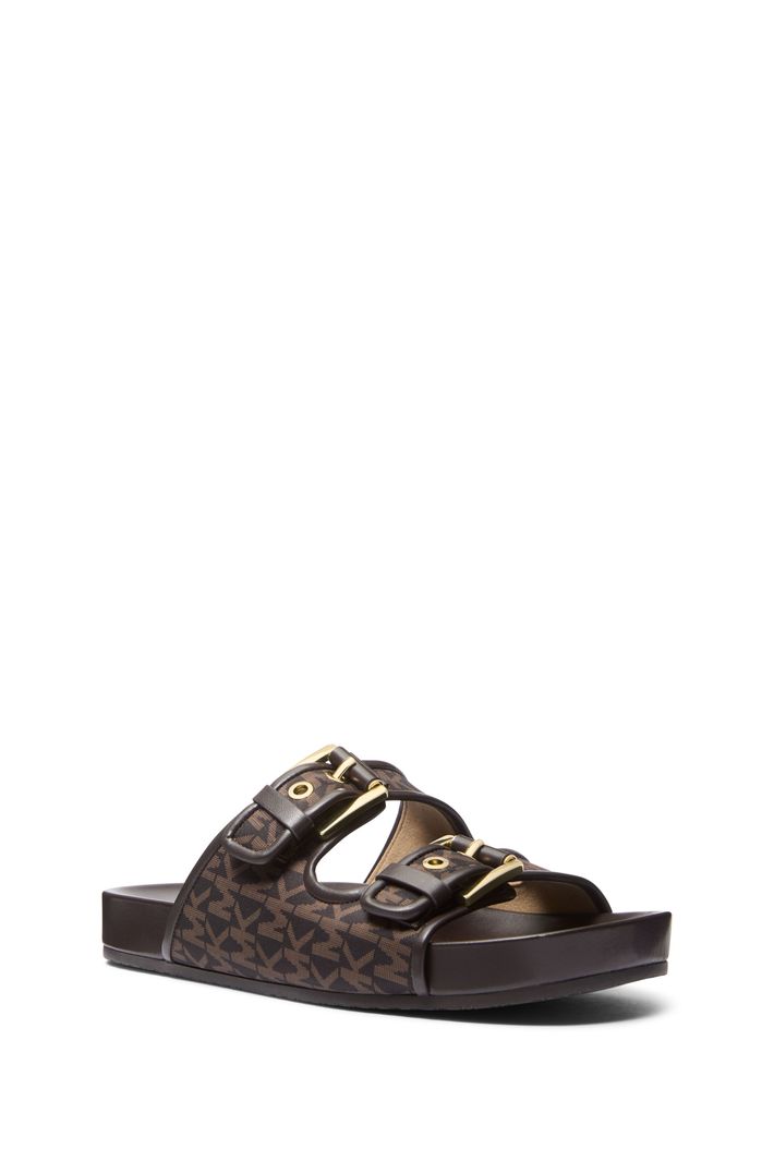 A sandália Byers é um modelo prático de calçar e sair, que adiciona um toque de luxo até mesmo aos looks mais casuais. Confeccionada com o nosso icônico logo Signature para um charme atemporal, apresenta design de duas tiras finalizado com fivelas metalizadas que garantem sofisticação extra.