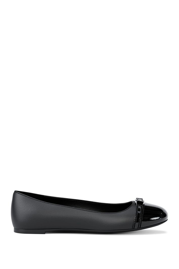 As sapatilhas Mandy serão suas aliadas fiéis no escritório, em almoços especiais e em diversas ocasiões. O modelo combina elegância e modernidade com a biqueira em couro envernizado, adornada com pingente de logo metálico, enquanto a palmilha acolchoada garante conforto prolongado ao longo do dia.