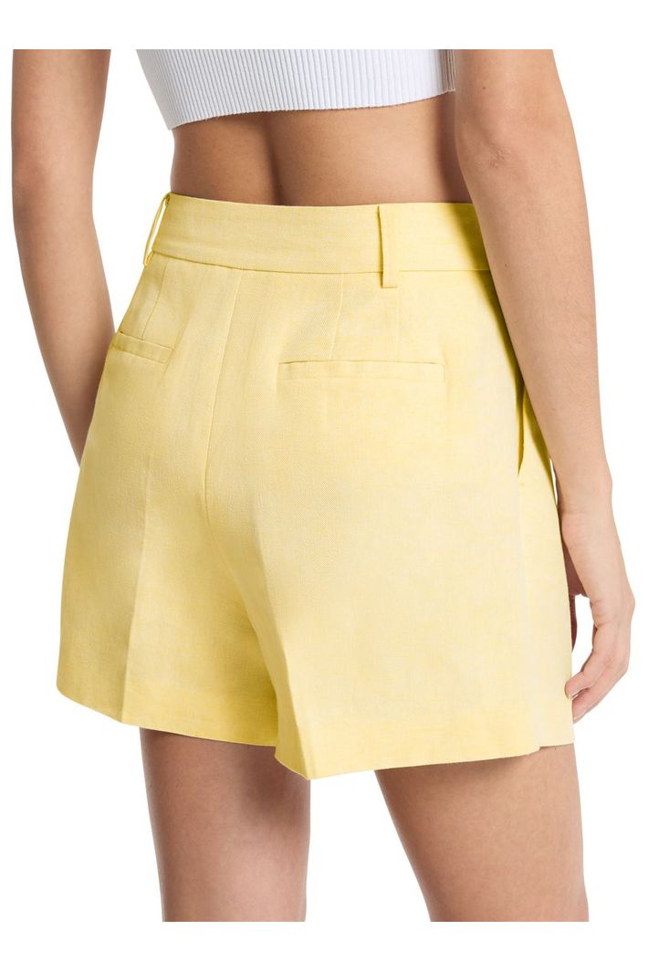 Um tom vibrante torna este shorts especialmente elegante. Desenvolvido para ser usado com o colete coordenado, ele é confeccionado em sarja com mistura de linho e algodão e traz pregas frontais que adicionam estrutura ao visual. A peça é perfeita para trazer mais leveza e energia aos looks de verão.