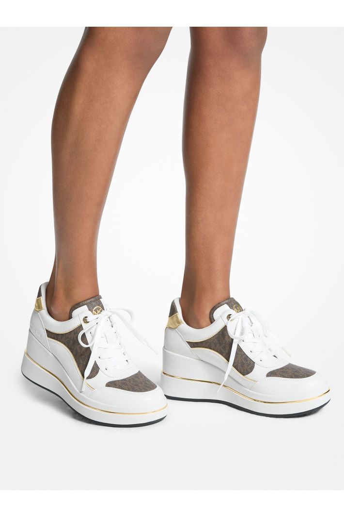 O tênis Emmy combina um design fashionforward com conforto para o dia a dia. Confeccionados em painéis de couro de alta qualidade e canvas com estampa de logo, apresenta fechamento com cadarço e salto anabela discreto, oferecendo leve elevação e amortecimento. Perfeito para um brunch casual ou para resolver compromissos com estilo, eles adicionam personalidade a qualquer look.