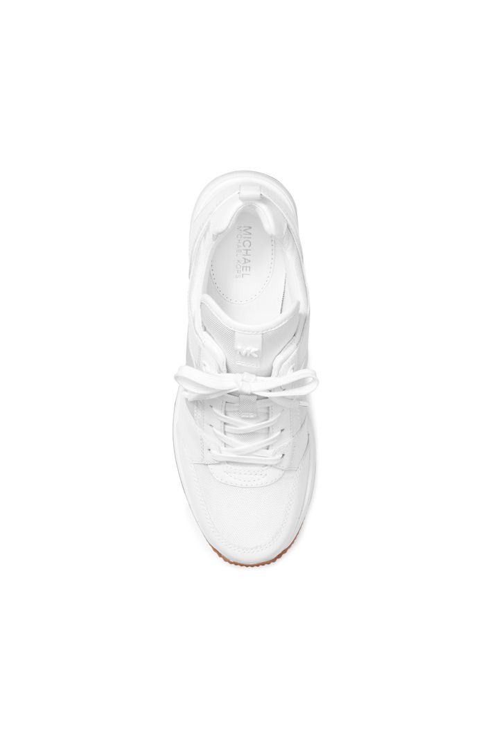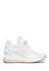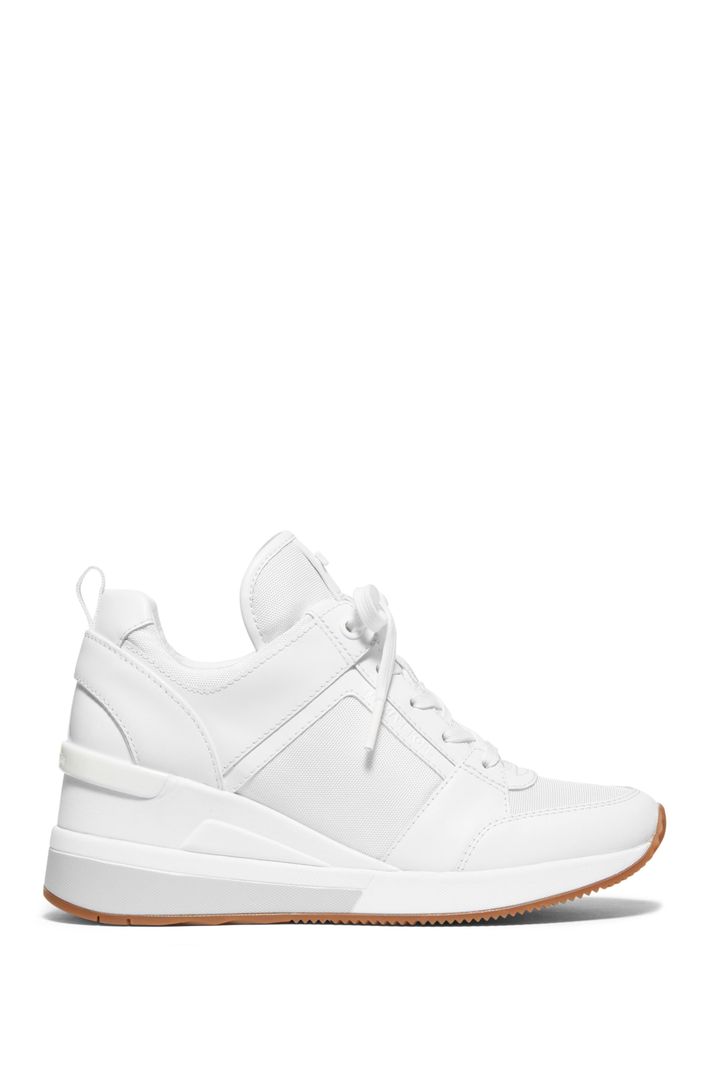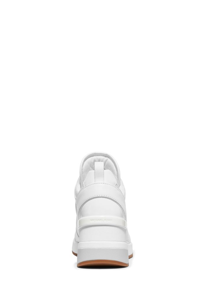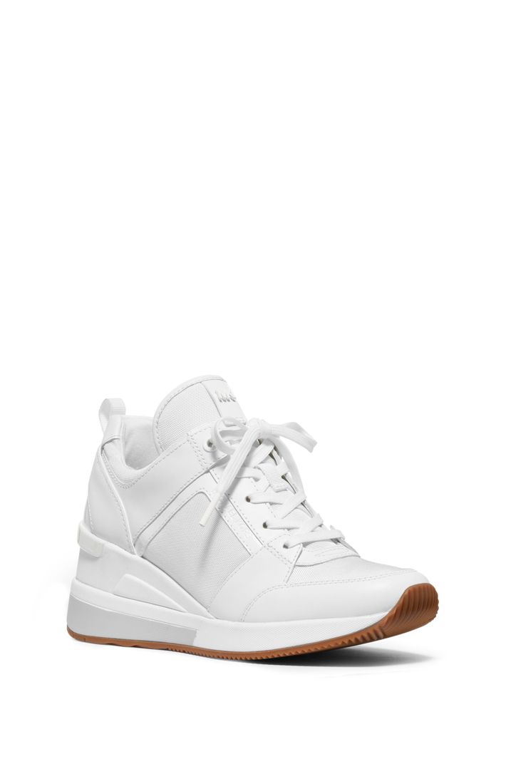 O nosso tênis Georgie é um par esportivo luxuoso perfeito para todas as ocasiões. O seu mix de textura com a nossa estampa MK, o couro metálico liso e o tecido, os deixam ultra modernos. Com salto, eles tornam qualquer look com saia ou jeans super elegante.
