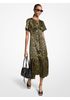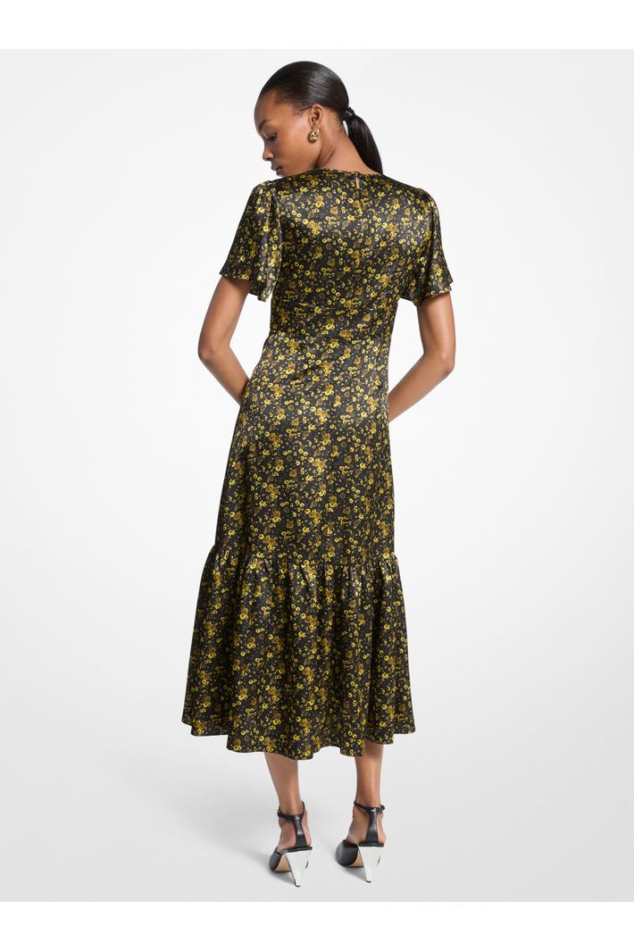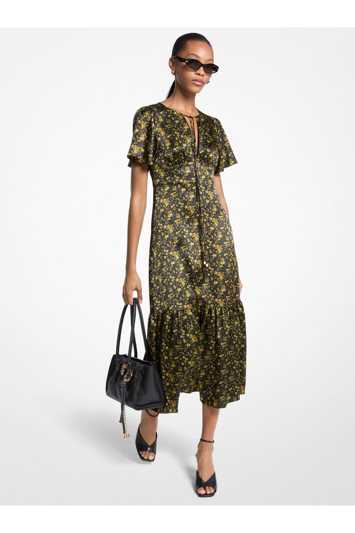 Seja para um jantar especial ou uma festa, este vestido midi é a escolha ideal para um visual chic sem esforço. Confeccionado em cetim com estampa floral, o modelo apresenta silhueta império que valoriza a feminilidade, com amarração no pescoço e caimento elegante. Versátil, pode ser usado facilmente sob jaquetas ou blazers. As mangas volumosas e a barra com babado adicionam um toque romântico e sofisticado ao look.
