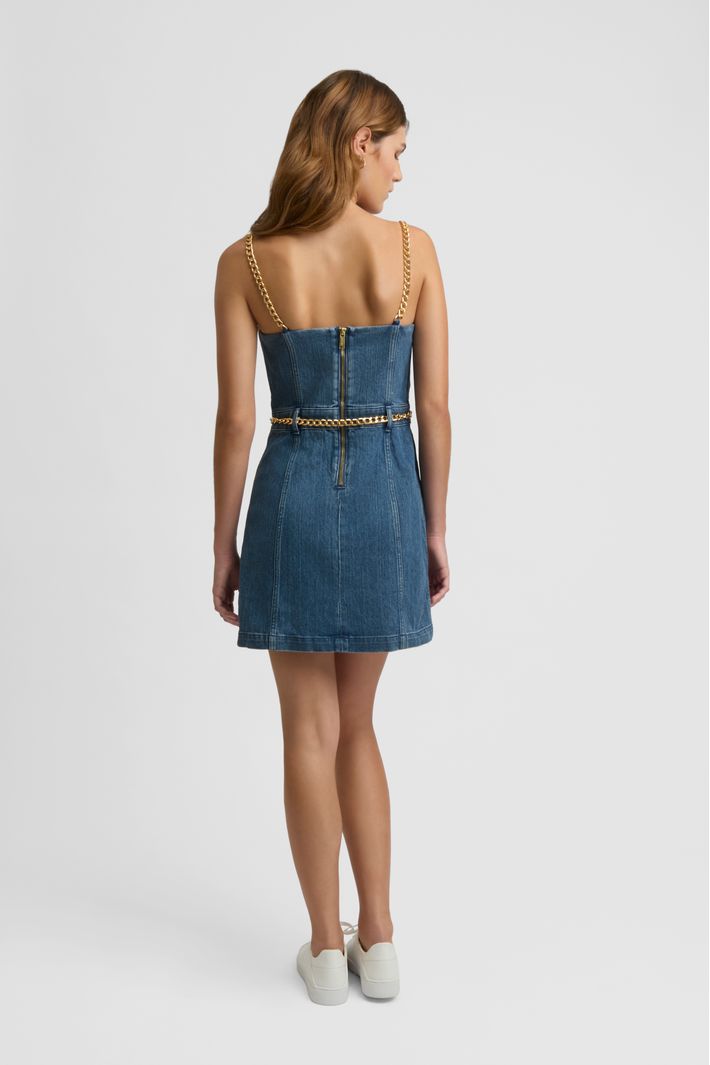 O nosso vestido Jeans é uma peça moderna e cheia de atitude. Seu design único combina a versatilidade do jeans com o toque de sofisticação das alças em corrente, criando um visual contemporâneo e arrojado. Acompanha um cinto de corrente com o icônico logo