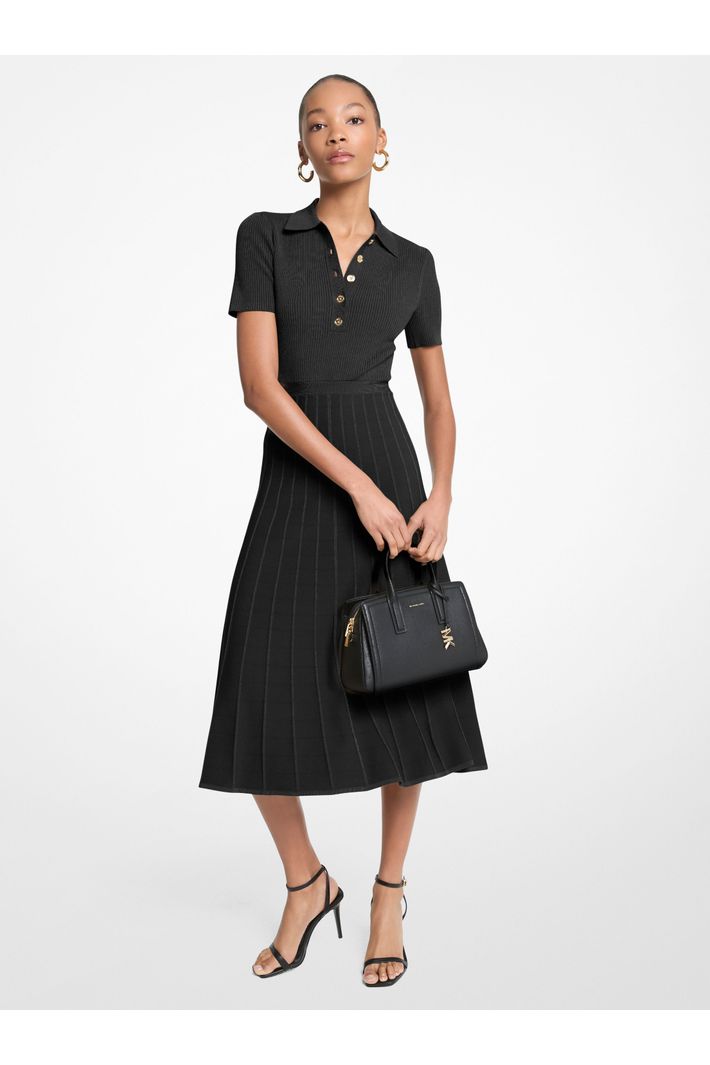 Versátil e atemporal, este vestido é a peçachave para acompanhar sua rotina com elegância. O busto em malha canelada com elasticidade apresenta inspiração na clássica polo, enquanto a saia midi canelada cria um efeito plissado sutil que adiciona movimento e sofisticação ao visual. Confortável e refinado na medida certa, transita com facilidade entre compromissos do dia a dia e ocasiões especiais. Combine com sandálias para um look leve ou sapatilhas para uma proposta delicada e moderna.